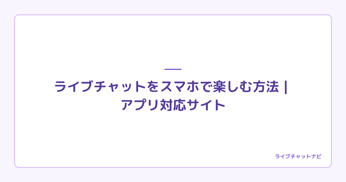 「ライブチャットってスマホから見れるの?」→全サイトスマホ対応。専用アプリは不要で、ブラウザからアクセスするだけでOK。
